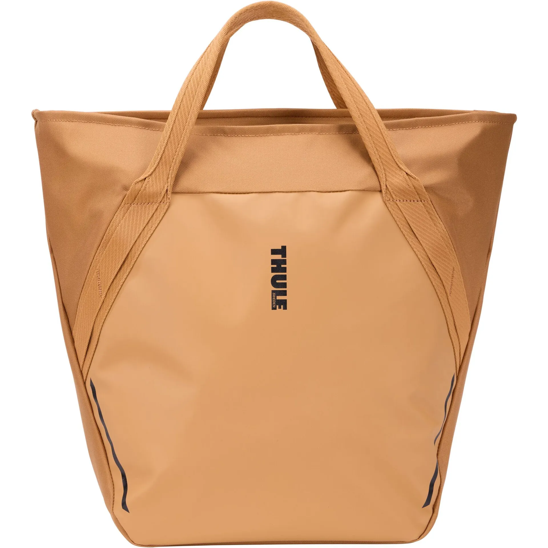 Slide it onto the Thule InLock system and it locks in place for a rattle-free ride. Take it off with a single pull of the webbing tab. Sturdy tote handles make carrying easy when you’re off the bike. Interior and front pockets give quick access to wallet, phone or keys. The reinforced base keeps the bag square and stable, even with heavier loads.