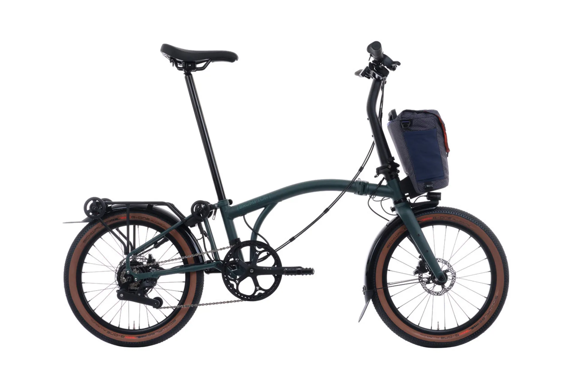 G Line arrives fitted with full-length mudguards and a roller frame as standard, plus custom puncture-resistant 20” tyres and a rugged front carrier block. It’s UL-certified for safety and includes space for a toolkit inside the frame.