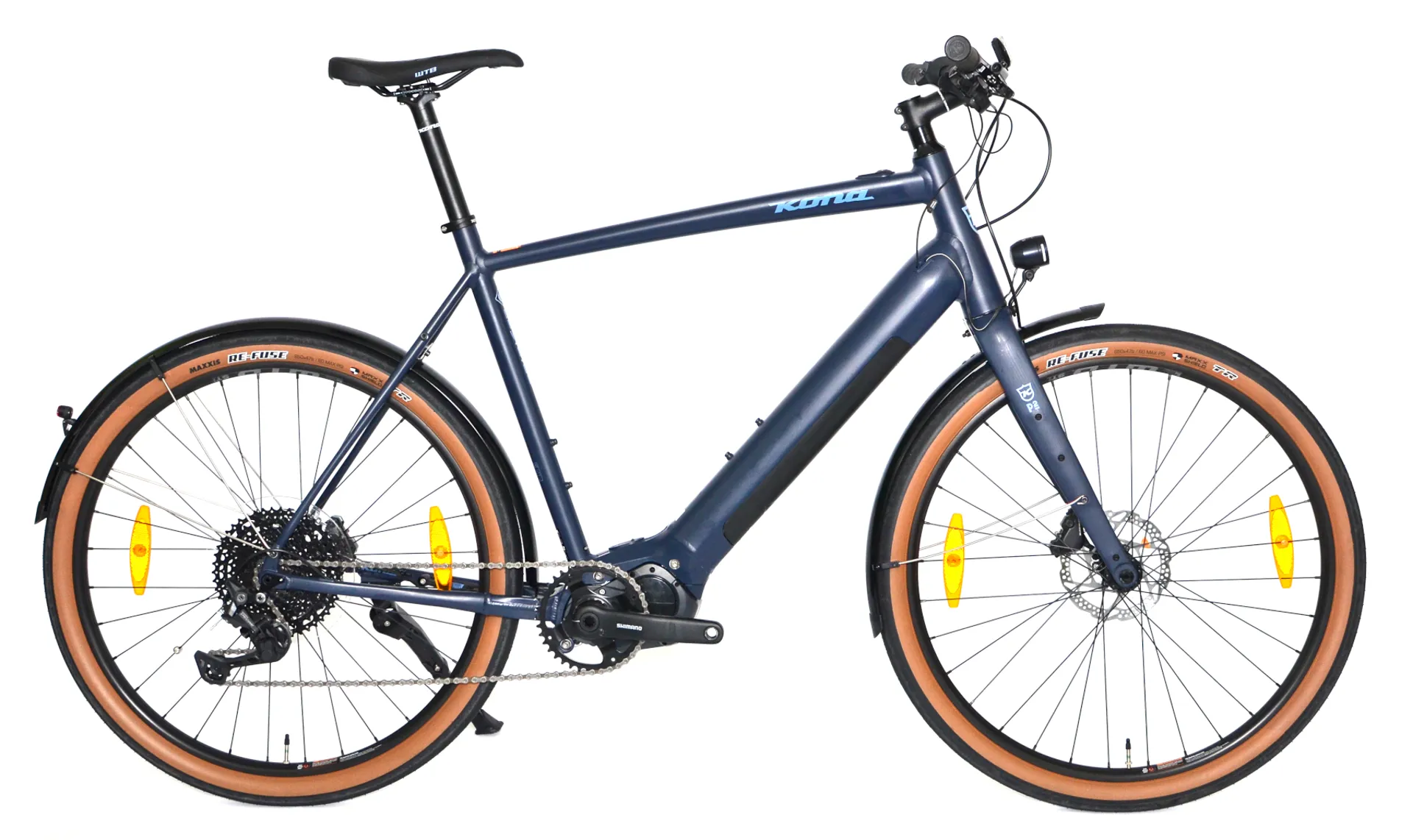 Commuters have been flocking to the Dew-E DL for its stylish design and because it’s a blast to ride. An aluminium frame features a Kona Rove Verso Full Carbon Flat Mount Disc fork. A 10-speed drivetrain works in perfect harmony with the low-profile Shimano motor and integrated battery. Sturdy aluminium mudguards and lights keep you dry and visible throughout your ride. Powerful hydraulic disc brakes and 160mm rotors stop on a dime, even in wet conditions and puncture-resistant 650x47c tyres keep the road rolling by smoothly whether you’re cruising on pavement, or a dirt path. This is the electric commuter you’ve been searching for!