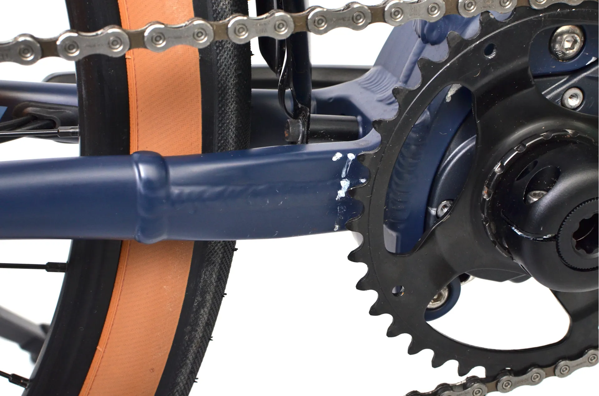 This bike has cosmetic damage to the crank arm, chain stay, seat post and chain ring. The bikes odometer reads 7 miles covered. We have taken pictures of the cosmetic imperfections, please inspect the images before making a purchase.