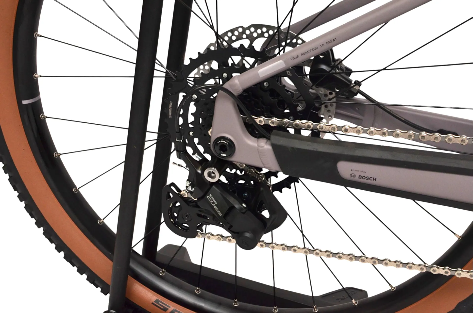 The Reaction Hybrid Performance delivers smooth assistance from the Bosch Performance motor (up to 75 Nm) alongside Shimano Cues 9-speed gears. Stopping power comes from Shimano hydraulic disc brakes while grippy Schwalbe Smart Sam 2.6in tyres provide confidence in varied conditions. A 100mm-travel suspension fork, lock-on grips and a comfortable saddle help you stay comfortable on longer rides.