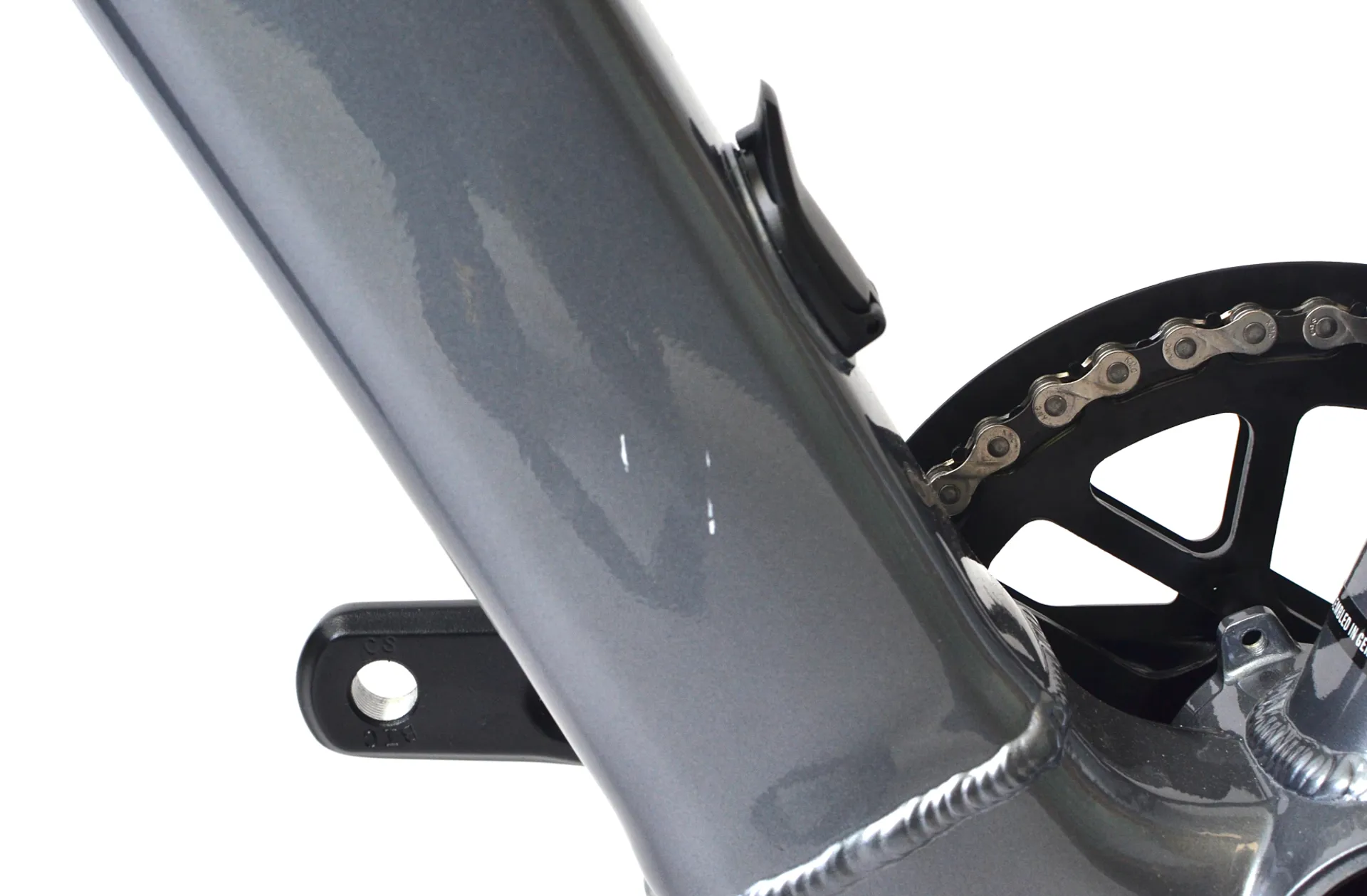 This bike has cosmetic damage to the forks, chain stay, top tube and down tube. We have taken pictures of the cosmetic imperfections, please inspect the images before making a purchase.
