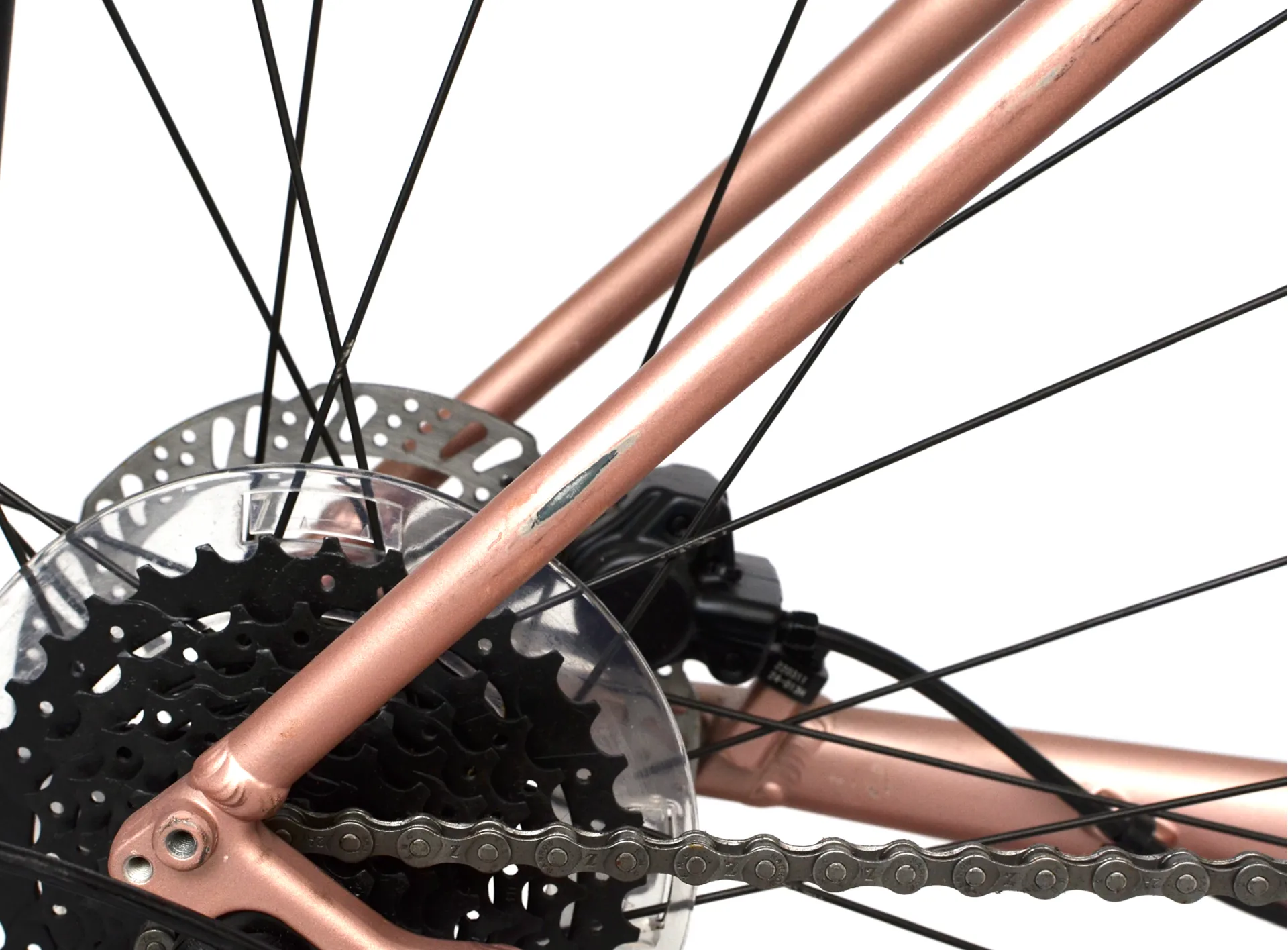 This bike has cosmetic damage to much of the frame and componentry. We have taken pictures of the cosmetic imperfections, please inspect the images before making a purchase.
