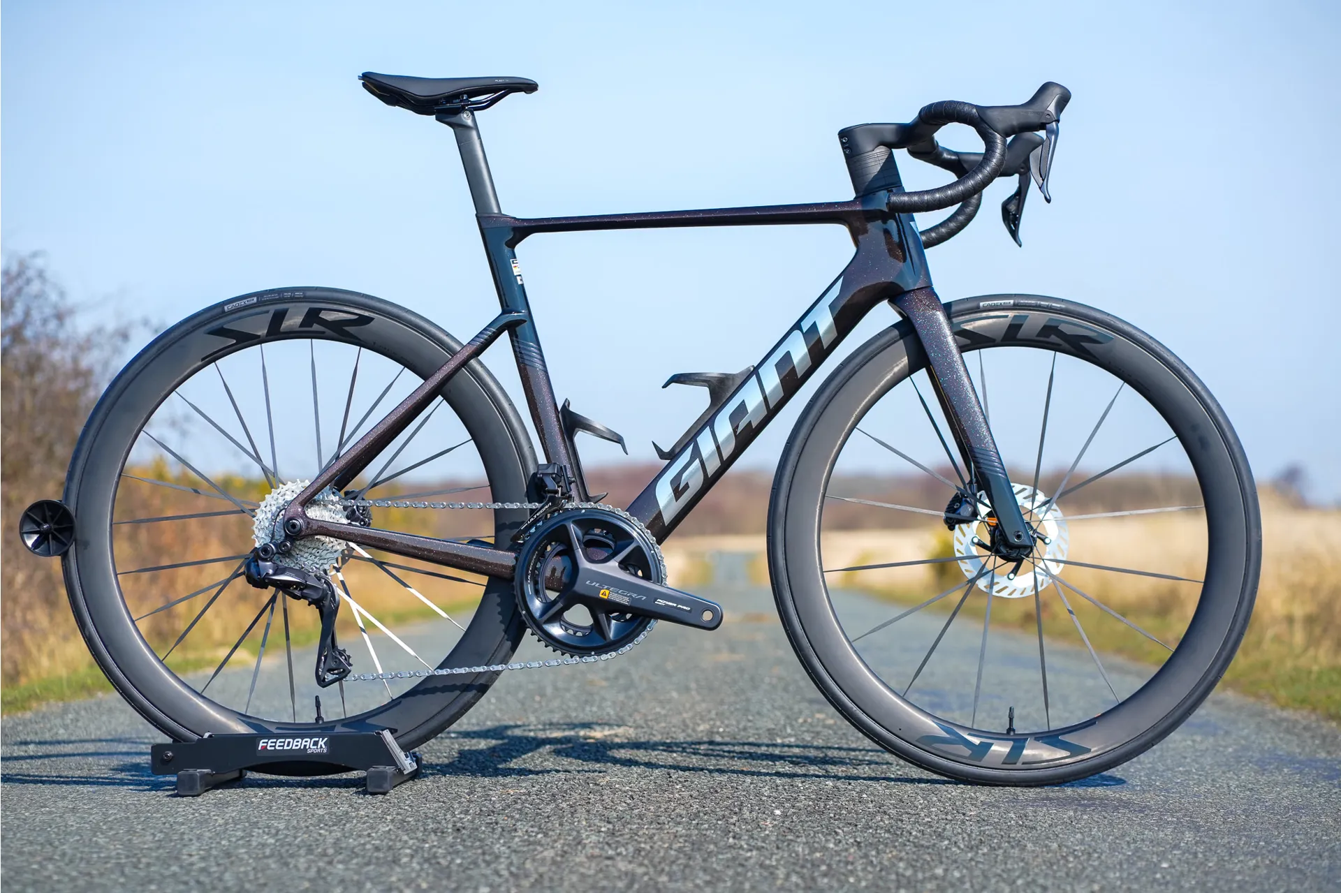Built on an Advanced-grade Composite frame with a full-composite OverDrive Aero fork. Shimano Ultegra Di2 12-speed drivetrain with a Giant Power Pro power meter. Giant SLR 0 50 Carbon WheelSystem wrapped in CADEX Aero tubeless 700x28c tyres. Hydraulic Ultegra brakes and an aero integrated cockpit complete the package.