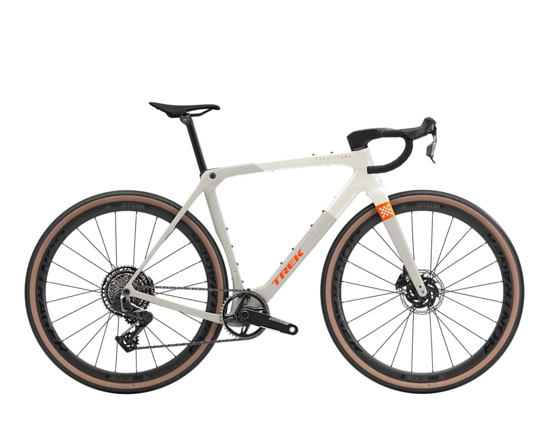 This SLR model pairs Trek’s 800 Series OCLV carbon frame and Checkmate SLR full carbon fork with Bontrager Aeolus Pro 3V wheels and an integrated Trek Aero RSL bar/stem to keep weight low and handling sharp. The SRAM Force XPLR AXS wireless drivetrain provides precise, reliable shifting tailored for gravel racing.