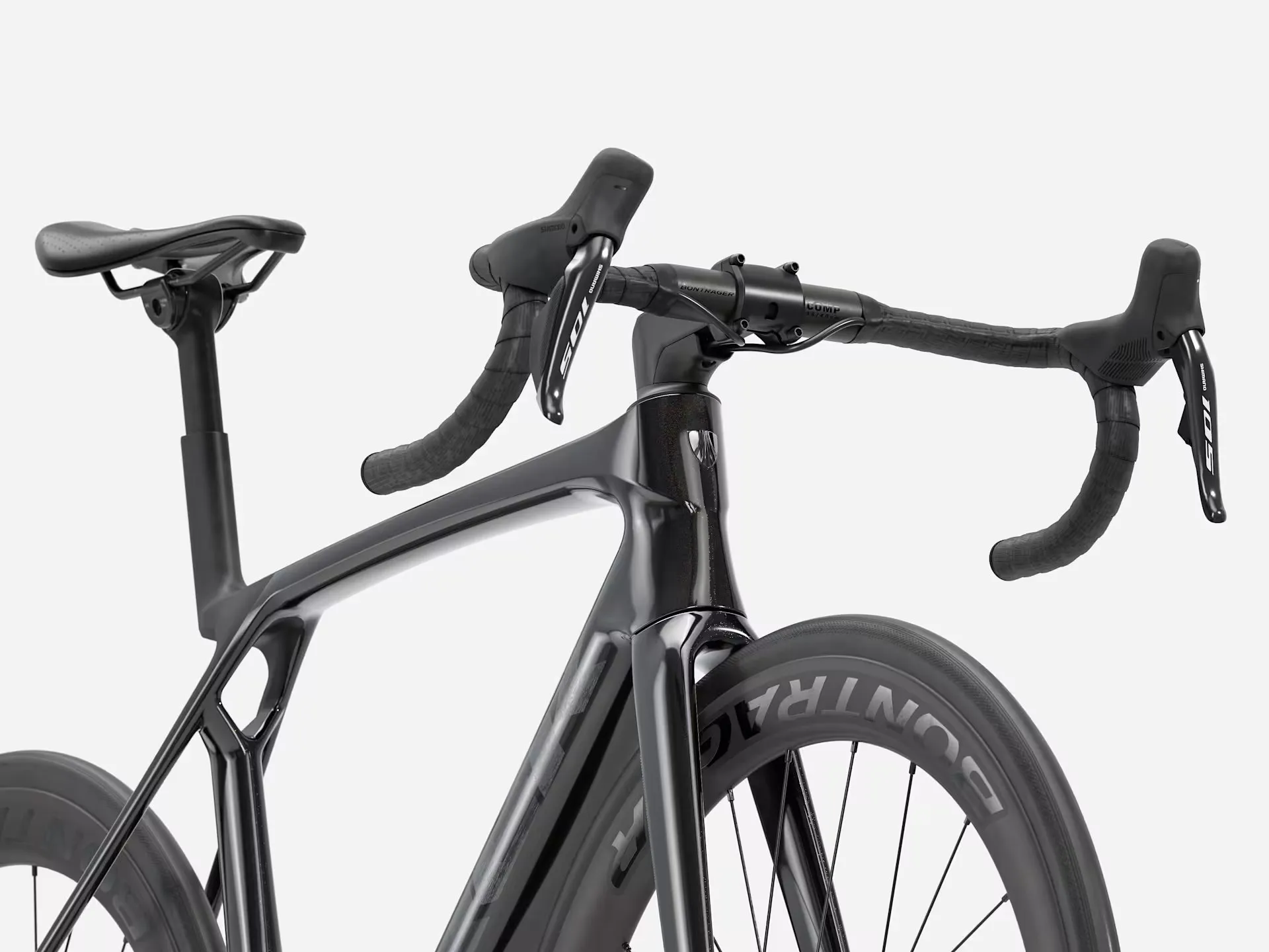 Shifting is fast, flawless, and fully electronic thanks to the Shimano 105 Di2 12-speed drivetrain, giving you pro-level tech at a wallet-friendlier price. And while the cockpit features a durable alloy Bontrager Comp handlebar, the bike rolls on premium Bontrager Aeolus Elite 50 carbon wheels—tubeless-ready, aero-optimized, and race-day capable straight out of the box.