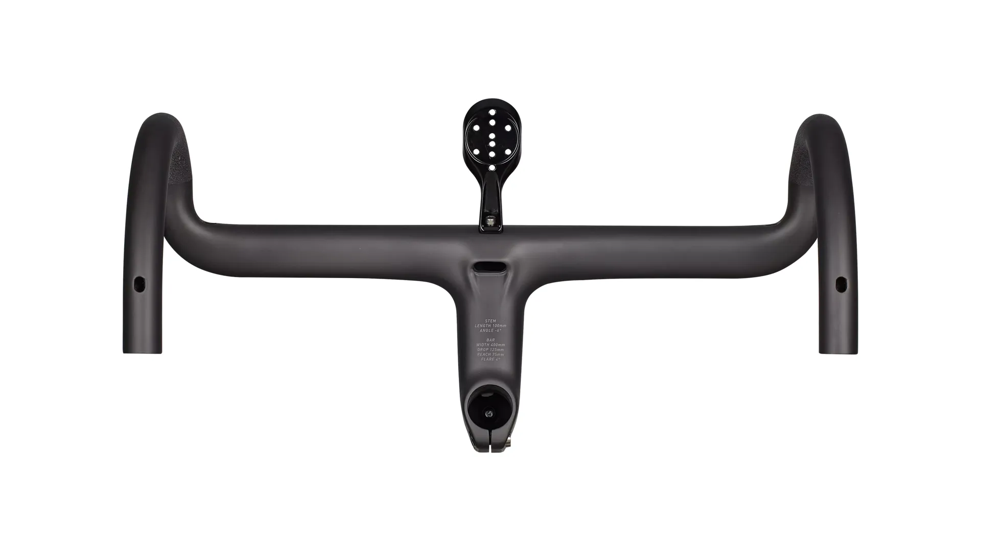 • Dimensions: 125mm drop × 75mm reach; 4° flare at the drops; stem x -6°