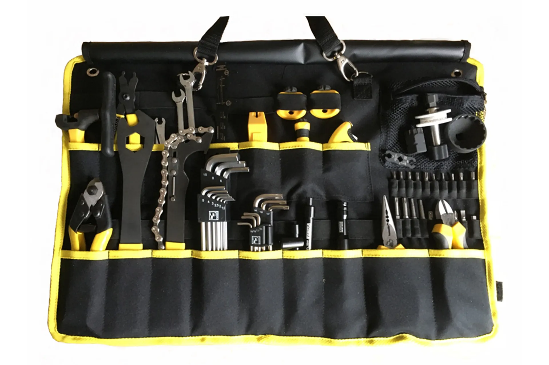 Pedro's Pro Burrito Tool Kit is an upgraded version of the regular wrap. Here you get all the tools you need to have immediately available as a mechanic in the accompanying car, or during cyclocross or XC rides. Packed in a practical Burrito Wrap that can be hung up from the mecca stand or car seat.